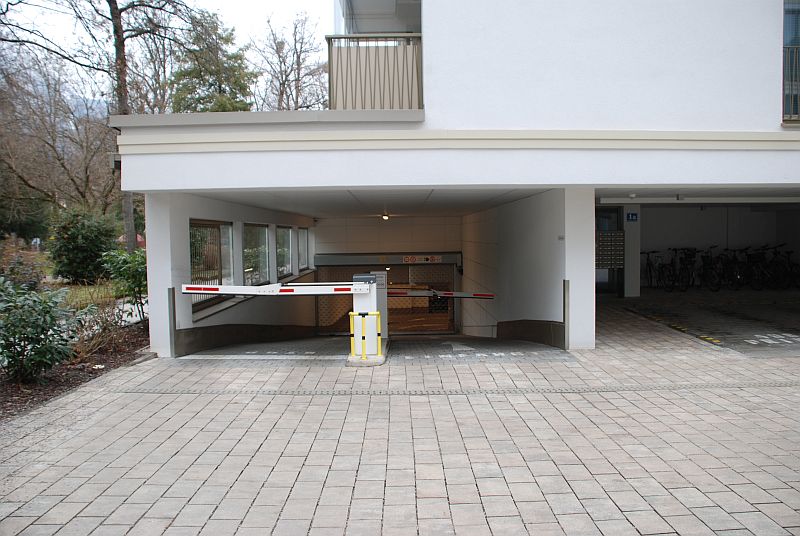 Vom Adolf-Bühler Weg gelangt man vorbei an einer Schranke, diese öffnet per Funksender, in die übersichtliche Tiefgarage und von dort direkt in das jeweilige Treppenhaus. Am Tiefgaragenplatz ist eine Steckdose angebracht, wodurch man E-Bikes laden kann. Vor dem Haus befindet sich ein überdachter Fahrradabstellbereich
